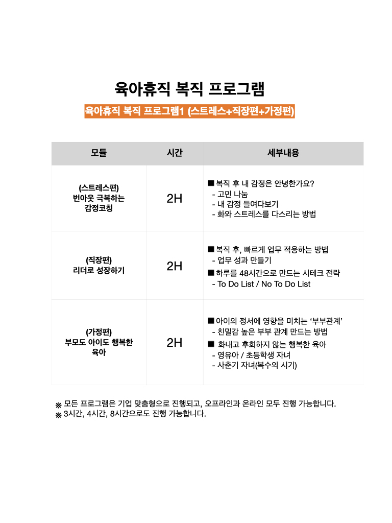 육아휴직 복직을 앞둔 복직자를 위한 교육프로그램